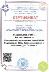 Школьный музей МБОУ Федосеевской СОШ им.В.М.Верёхина был открыт в 1995 году. Музей комплексно-краеведческий; он был открыт в связи с тем, что учащимися школы был собран большой материал по истории развития села, школы, об участниках гражданской и Отечественной войн с целью обобщения и систематизации этого материала, а так же воспитания у учащихся патриотических качеств, гордости за свою малую Родину. Экспозиции музея представлена по следующим разделам: